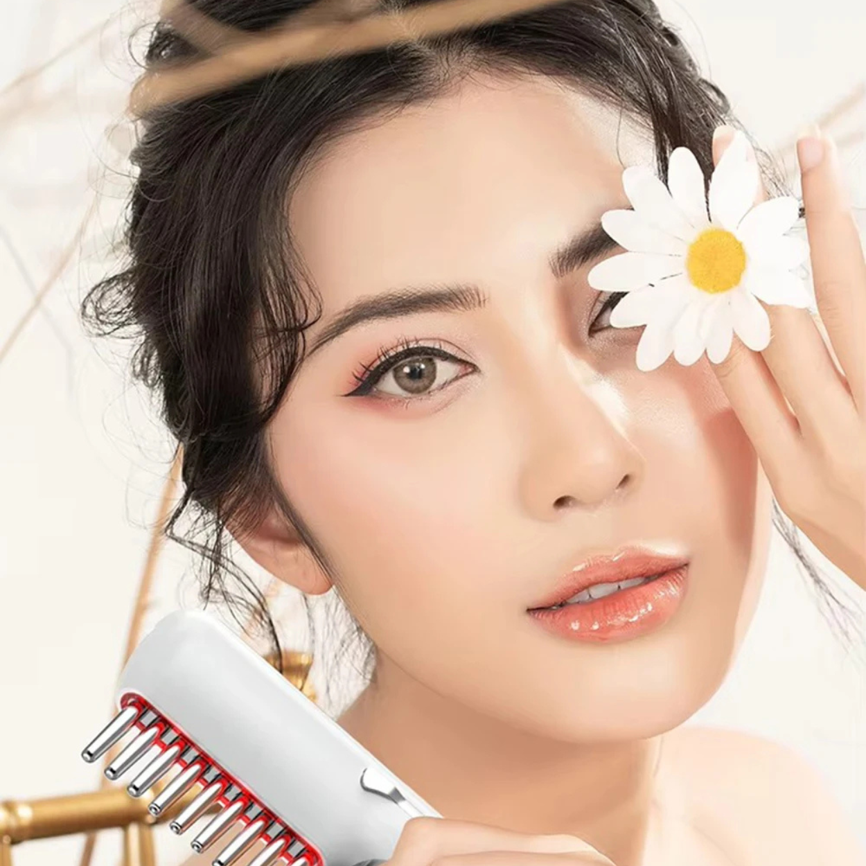 Poznaj nasz rewolucyjny grzebień, który łączy 5 zaawansowanych technologii, aby odmienić zdrowie Twoich włosów i przywrócić gęstość skóry głowy.